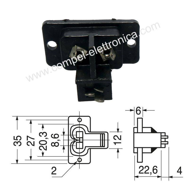 PRESA ALIMENTAZIONE EN 60320 AC 2 POLI PANNELLO