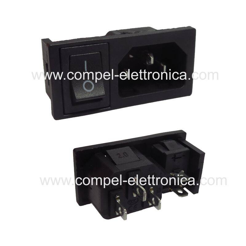 SPINA PANNELLO TRIPOLARE 10A 250Vac C14 - CON INTERRUTTORE AUTOBLOCCANTE
