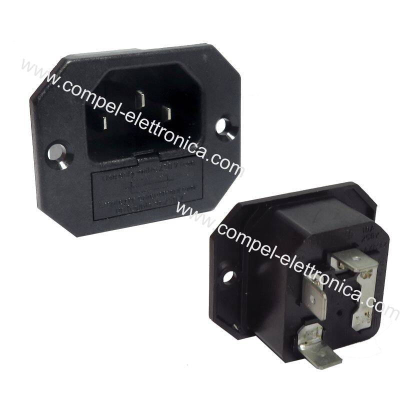 SPINA PANNELLO TRIPOLARE 10A 250Vac VDE C14 CON 1 PORTAFUSIBILE