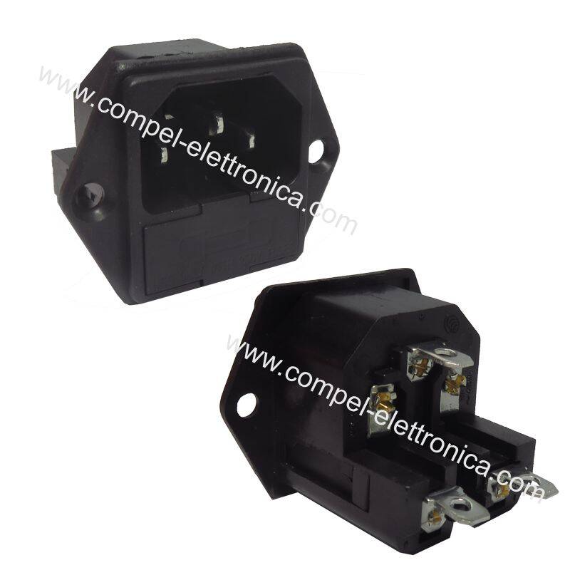 Descrizione: Spina IEC C14 da pannello alimentazione tripolare con 2 portafusibili