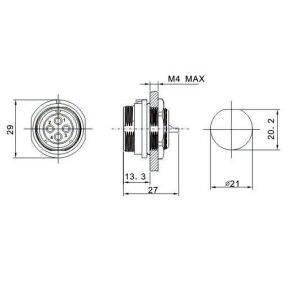 PRESA SP21 FEMMINA PANNELLO 4 POLI IP68 FILETTATURA ESTERNA