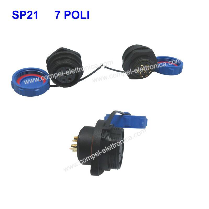 PRESA SP21 FEMMINA PANNELLO 7 POLI IP68 FILETTATURA ESTERNA CON TAPPO