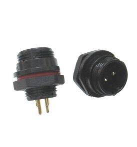 Descrizione: Connettore waterproof spina pannello maschio 2 poli filettatura esterna