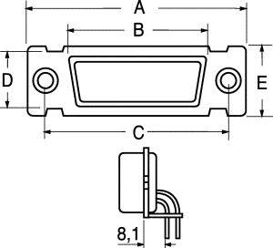 Descrizione: Connettore femmina ad angolo 90° a vaschetta 15 poli