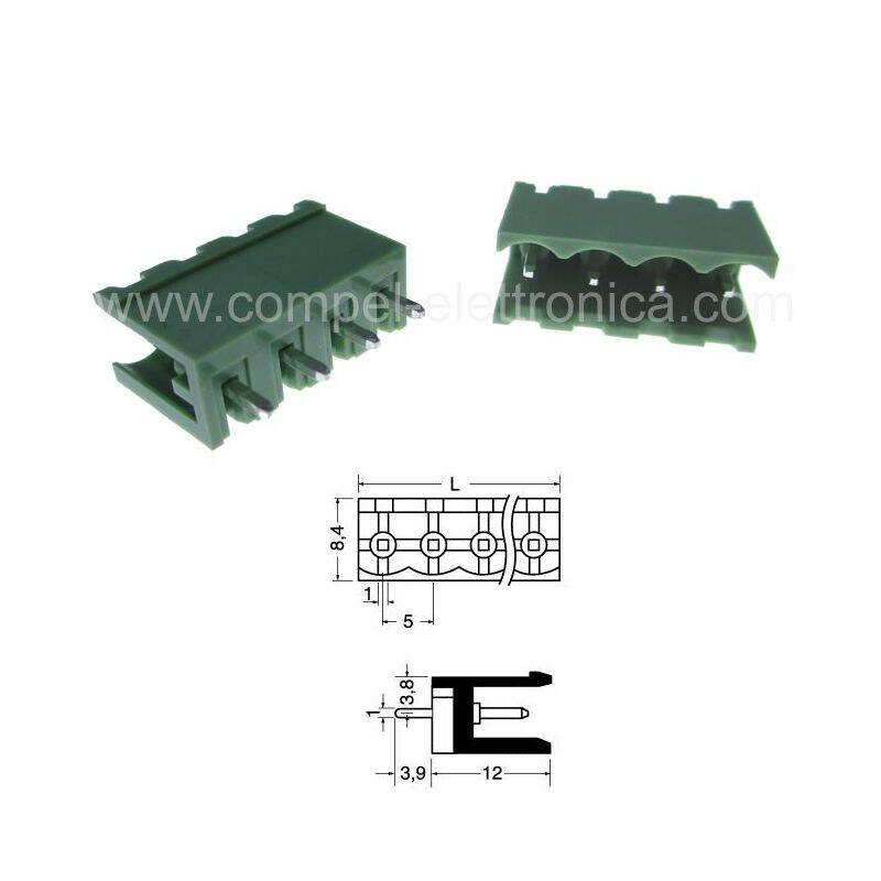 MORSETTIERA MASCHIO A PRESA 4 POLI PASSO 5MM C.S.