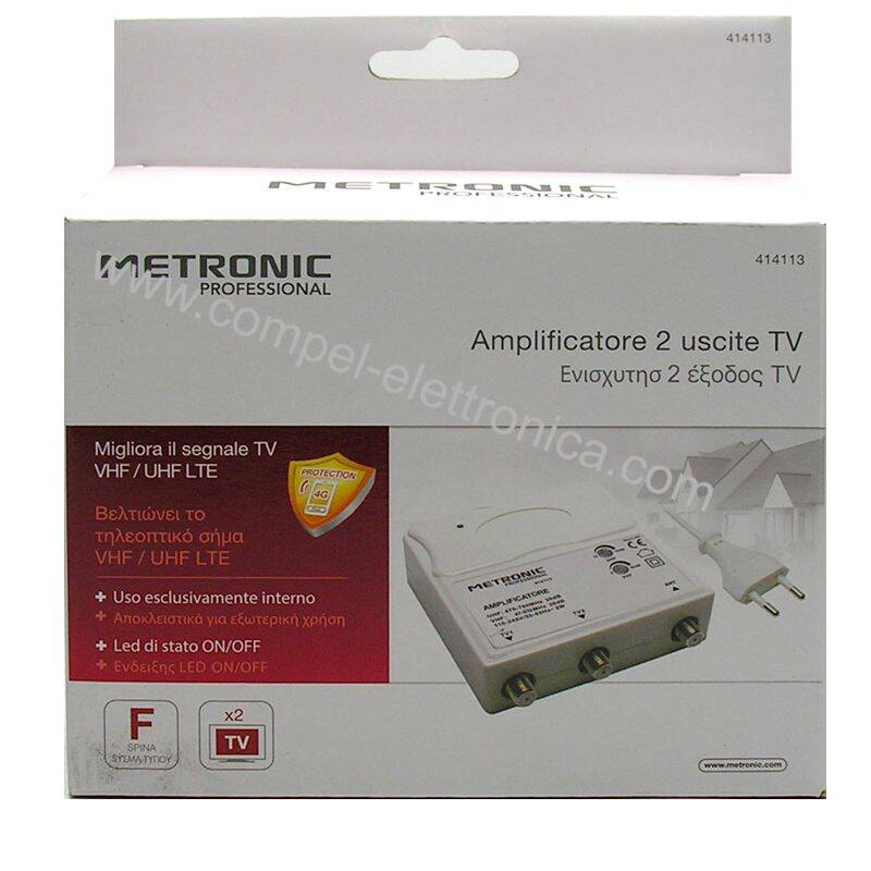 AMPLIFICATORE ANTENNA TV VHF UHF 1-IN 2-OUT 30DB FILTRO 5G REGOLABILE