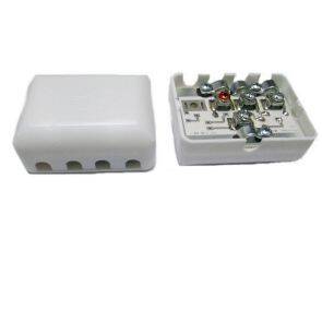 Descrizione: Partitore o sdoppiatore da interno da 1 contatto a morsetto in ingresso a 3 contatti a morsetto in uscita con passaggio corrente continua.