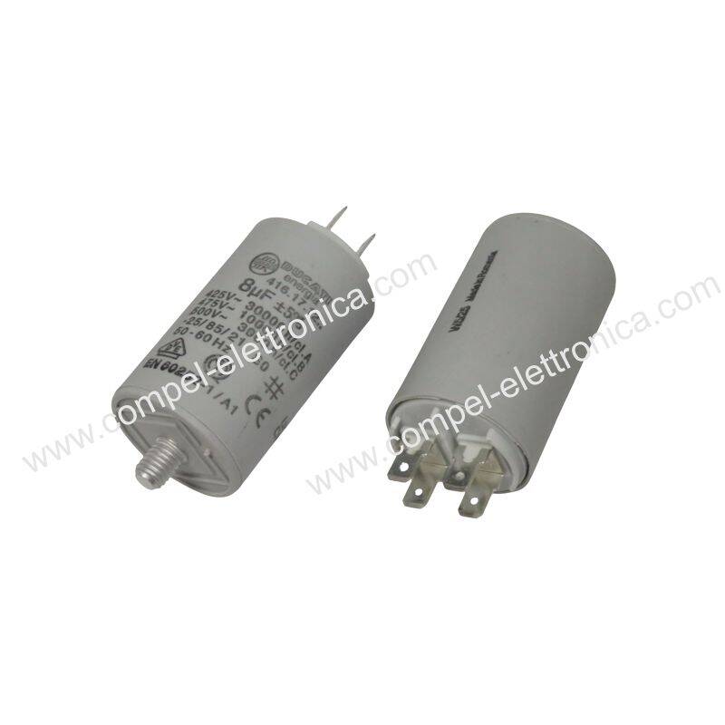 CONDENSATORE 8uF 450Vac PER AVVIAMENTO MOTORI A FASTON DUCATI 36x61mm