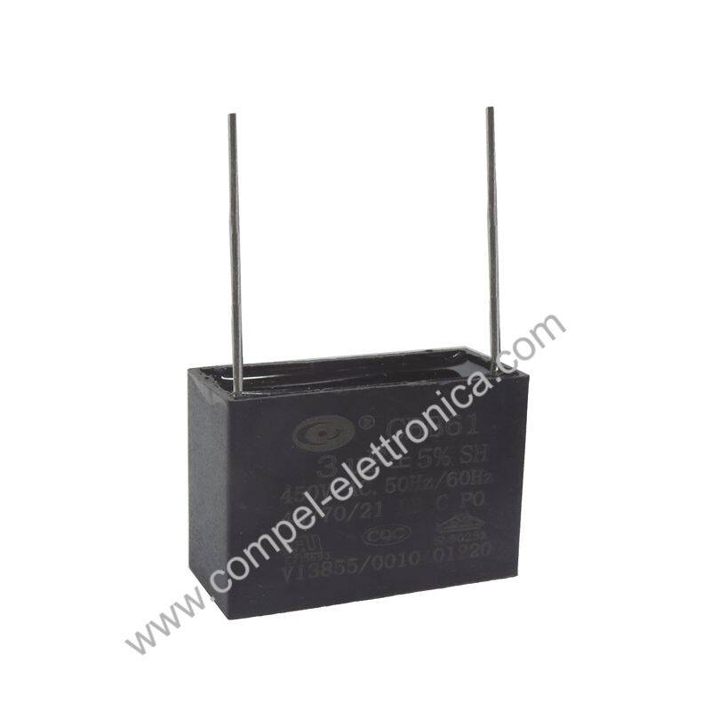 CONDENSATORI 3UF 450Vac IN BOX PER AVVIAMENTO MOTORI 2 FILI 37x25x15mm
