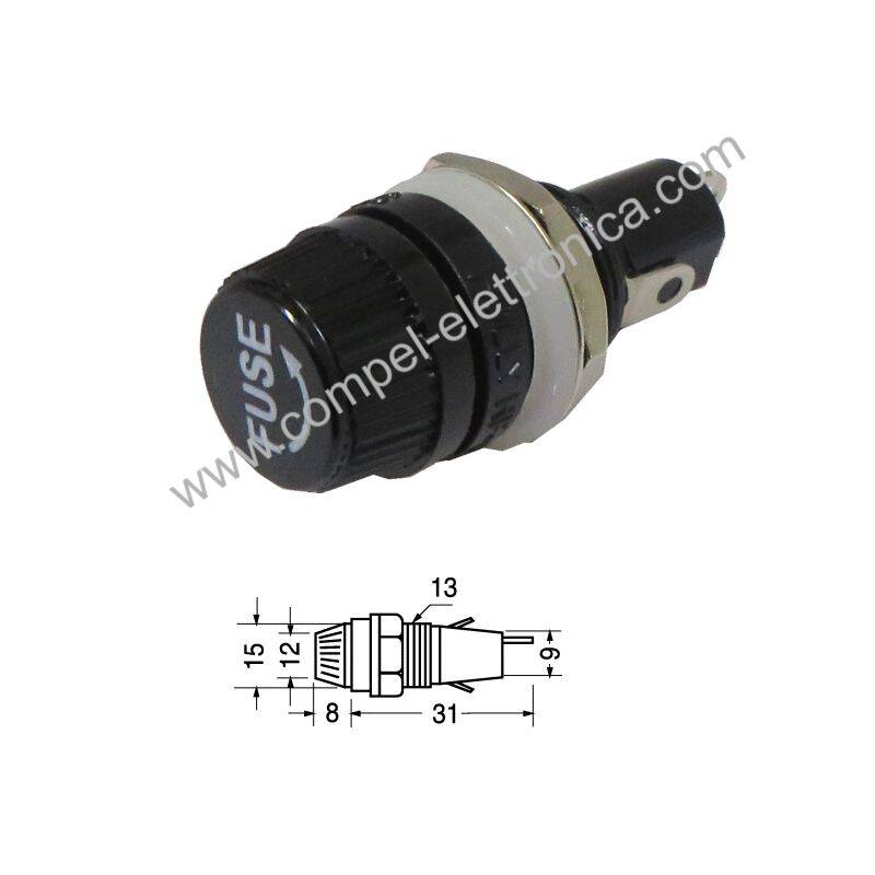 PORTAFUSIBILE DA PANNELLO PER FUSIBILE 5X20 10A/250VAC NORME VDE