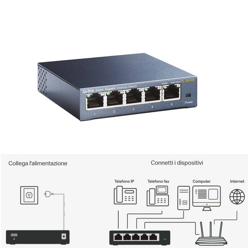 HUB ETHERNET SWITCH DI RETE Gigabit 10/100/1000M 5 PORTE RJ45 TL-SG105