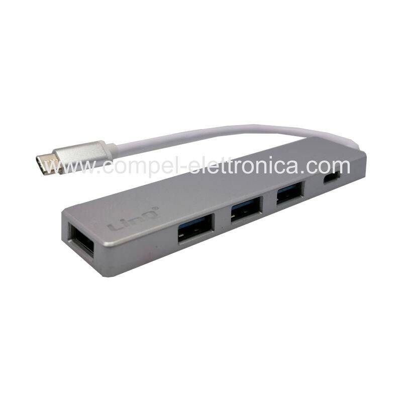 HUB 4 USB 1 PORTA USB-C 3.0 3 PORTE USB 2.0 SILVER