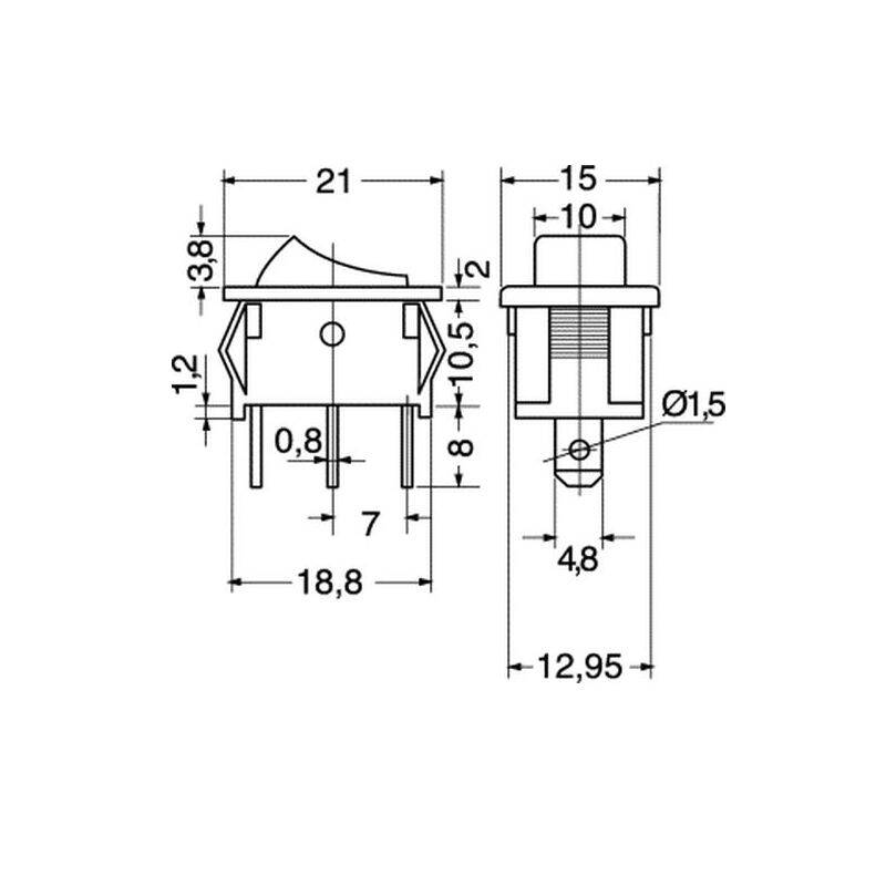 Descrizione:interruttore-deviatore bilanciere unipolare in miniatura.NERO