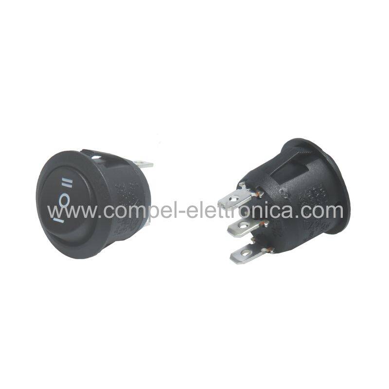 INTERRUTTORE BILANCERE TONDO 10A 250V SP3T ON-OFF-ON 3 POS. NERO