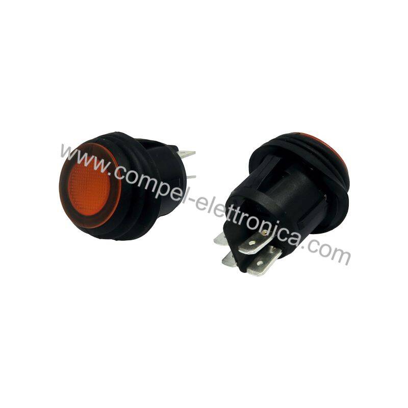 Descrizione: Interruttori BIPOLARI tondi luminosi ARANCIONI a bascula / bilanciere