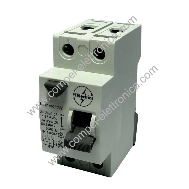 MAGNETOTERMICO DIFFERENZIALE 240Vac 25A 30mA 2P GUIDA DIN