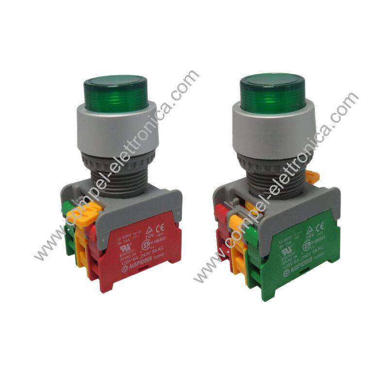 PULSANTE 2 POSIZIONI LUMINOSO VERDE 240VAC 3A NC/NO
