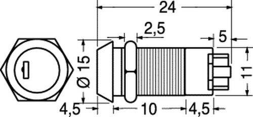 INTERRUTTORE A CHIAVE MINIATURA NON ESTRAIBILE 2 POSIZIONI OFF-ON D.15MM