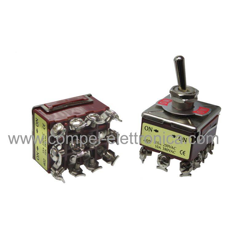 DEVIATORE A LEVA 250VAC 15A 4 SCAMBI 2 POSIZIONI ON-OFF DA PANNELLO