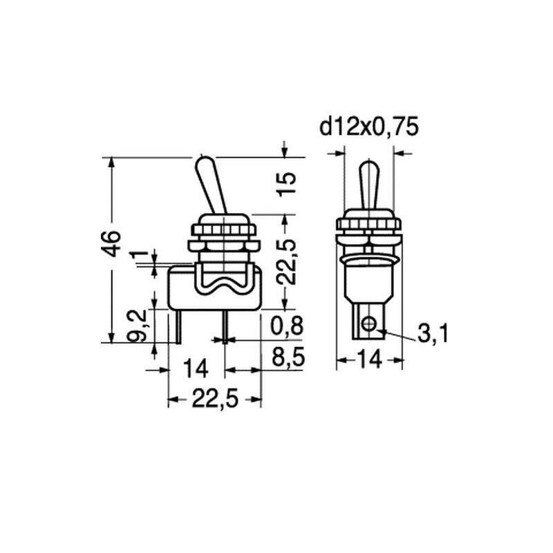 Dimensioni: spessore 14mm larghezza 22,5mm altezza 22,5mm 15mm leva