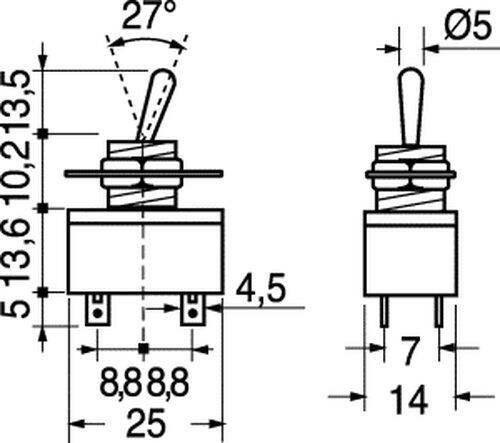 Descrizione: Interruttore unipolare a leva piatta 2 posizioni OFF-ON. In metallo