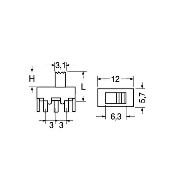 Descrizione: Deviatore a slitta minutura 1 scambio 2 posizioni