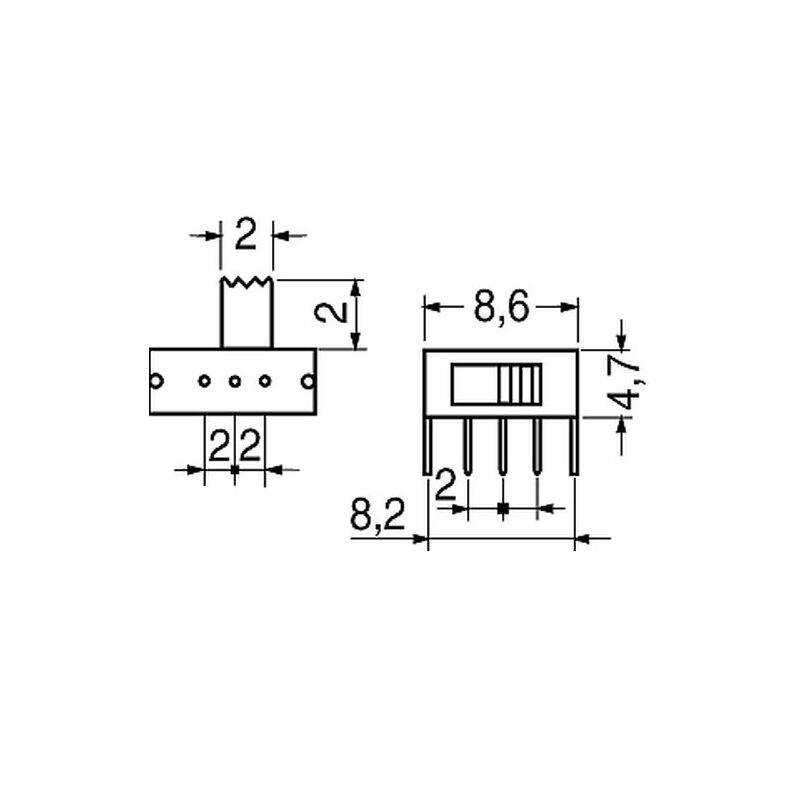Descrizione: Deviatore, interruttore, minutura a slitta 1 scambio 2 posizioni