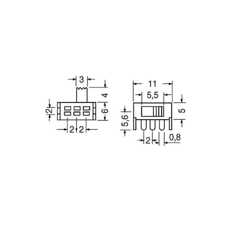 Descrizione: Deviatore, interruttore, minutura a slitta 2 scambi 2 posizioni