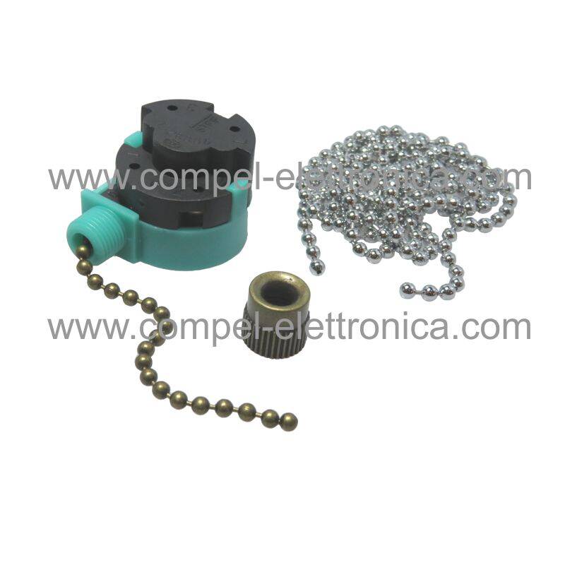 Descrizione: Interruttore a catenella con 3 commutazioni per ventilatori e altri apparati. Senza catenella