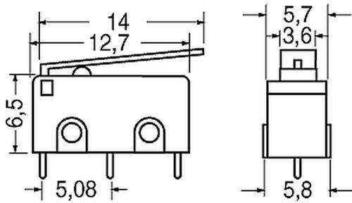 MICRODEVIATORE SWITCH 1A 125VAC SPDT LEVA 12,5MM A SALDARE CIRC.STAMPATO