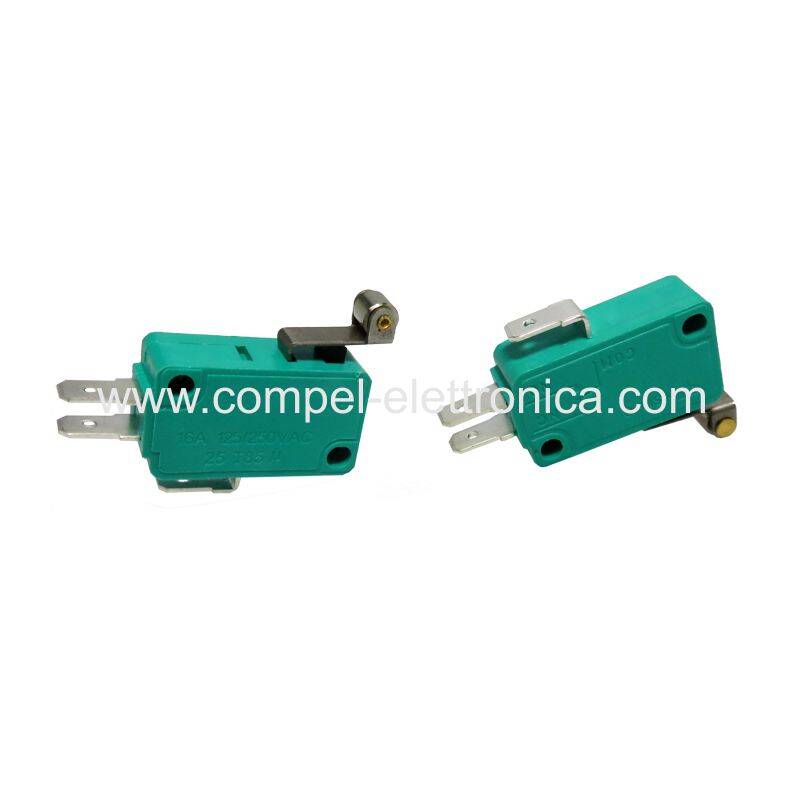 Descrizione: Microswitch ON-(ON) - micro commutatore SNAP ACTION CON LEVA CORTA E ROTELLINA SPDT