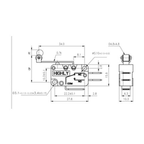 Descrizione: Microdeviatori switch, con leva 27mm con rotella