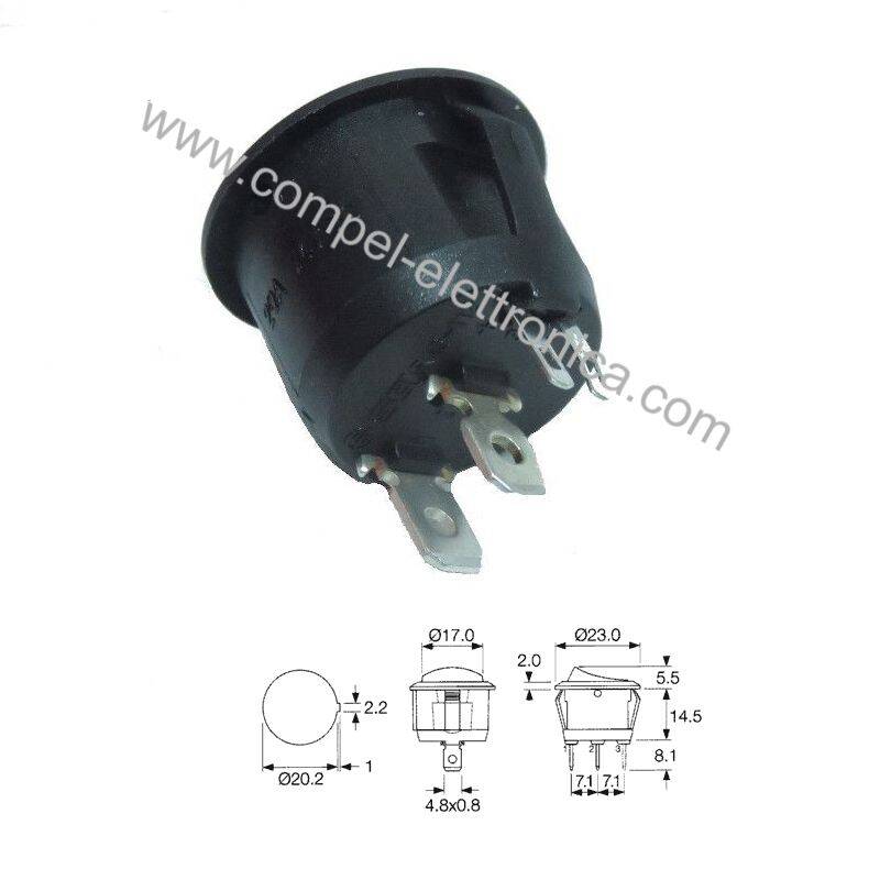 Descrizione: Pulsante a bascula tipo ROCKER 2 posizioni OFF-(ON) tasto con autoritorno