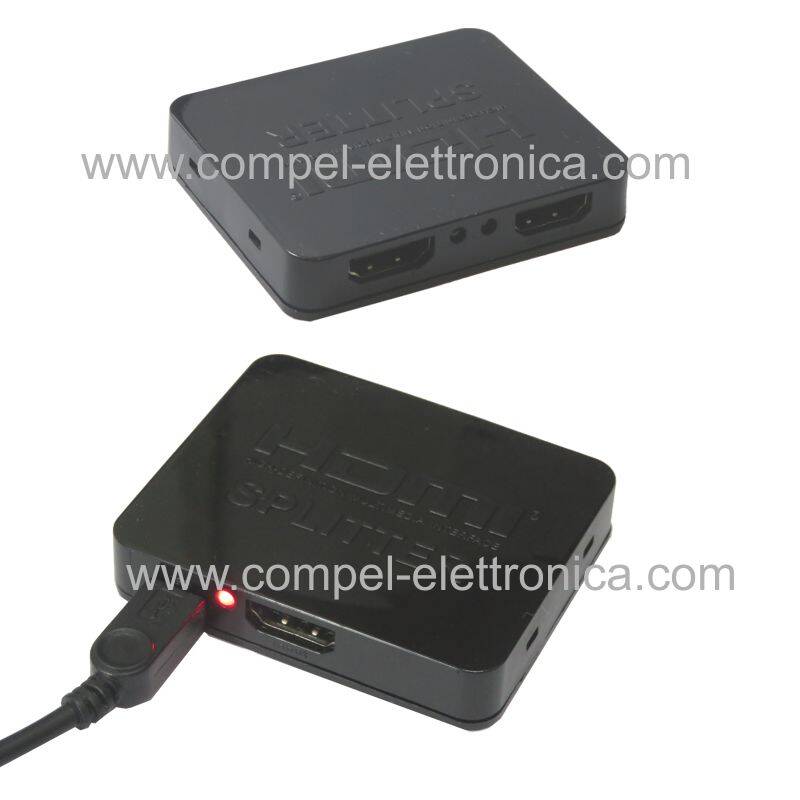 SPLITTER HDMI FULL HD 4K 3D 1 INGRESSO 2 USCITE ALIMENTAZIONE USB 5V