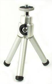 Descrizione: Treppiede, o cavalletto da tavolo, silver in alluminio per macchine fotografiche e videocamere. I piedi sono regolabili in 3 livelli differenti: 15cm 12,7cm 10cm