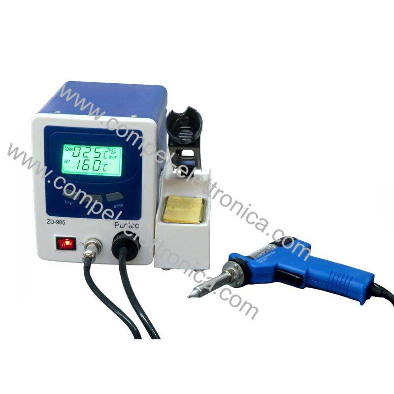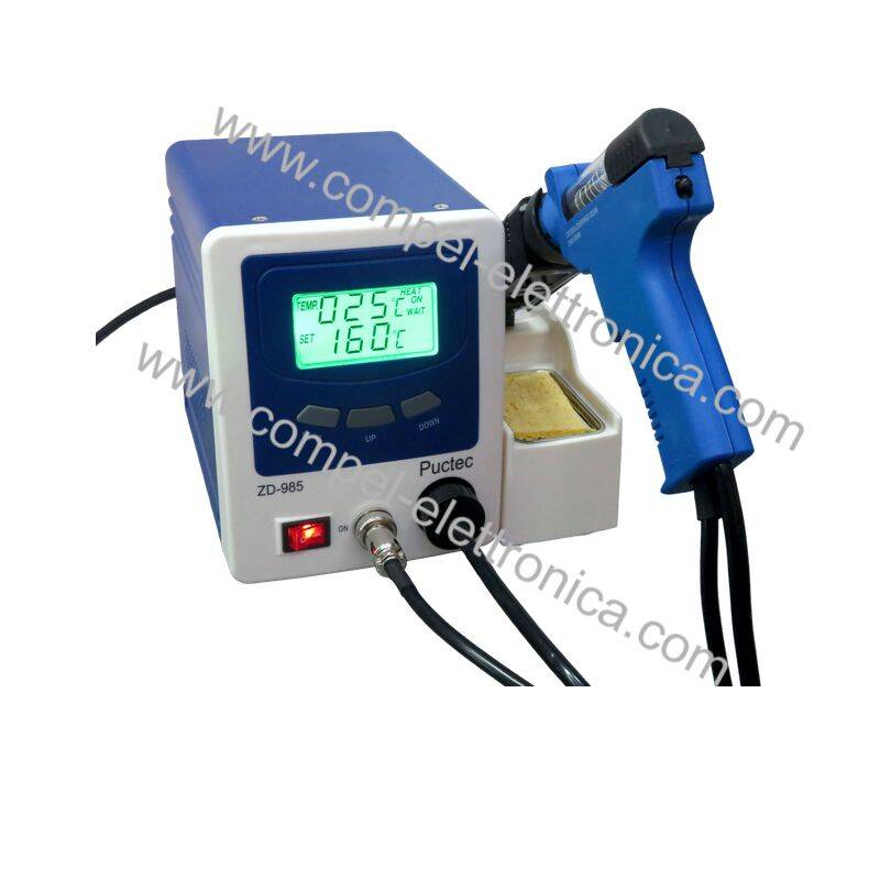 Descrizione: Stazione dissaldante digitale ZD-985 con regolazione della temperatura e display 30x60mm per la visione della temperatura impostata e di lavoro. La temperatura impostata sull'elemento riscaldante può essere regolata in incrementi di 1° da 160°C a 480°C (o 320°F - 896°F)