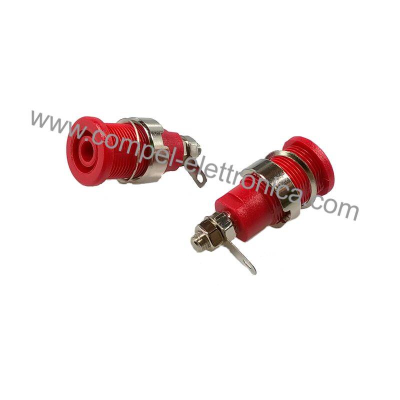 Descrizione: boccola a norme IEC 1010 CATII per spine a banana di sicurezza 4 MM. Rossa