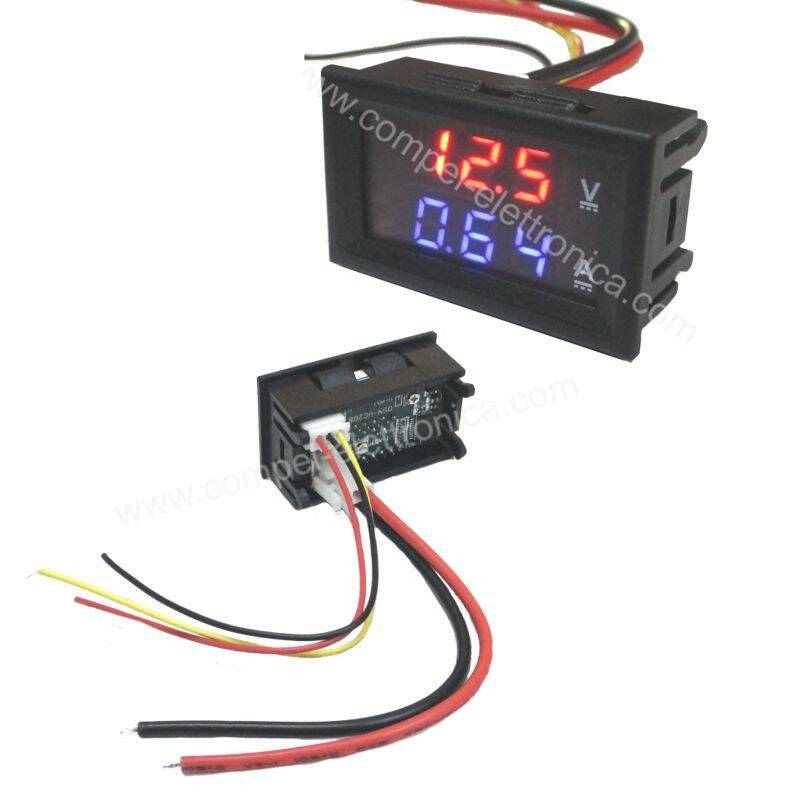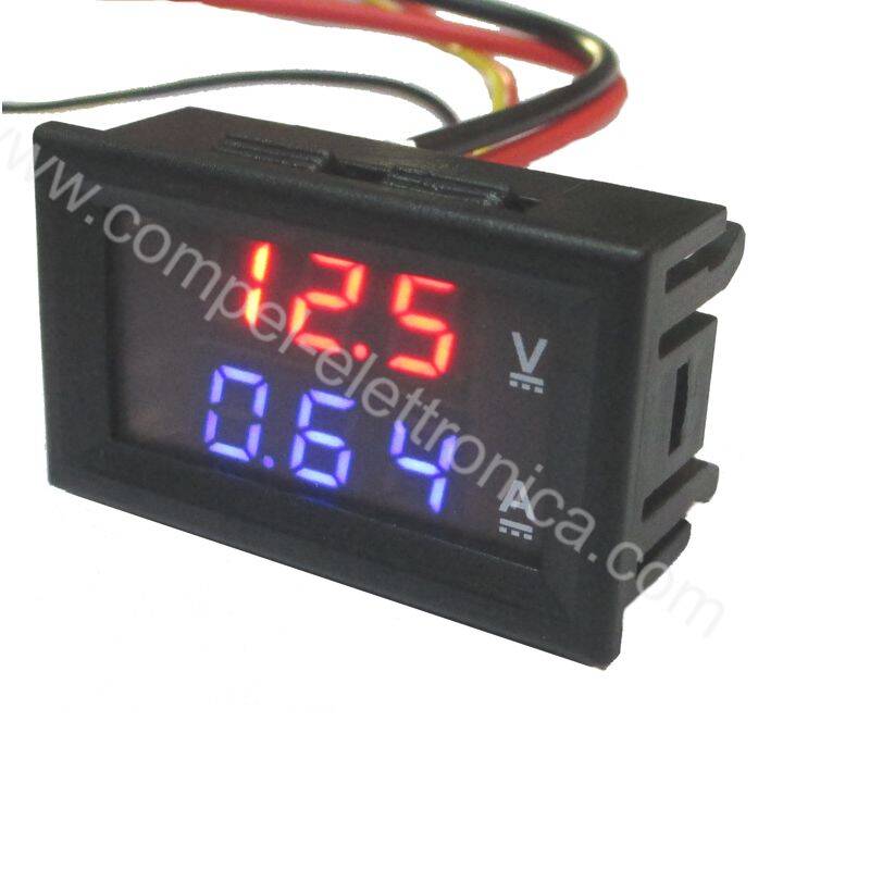 AMPEROMETRO E VOLTMETRO 0..100VDC 10A DIGITALE DA PANNELLO A LED