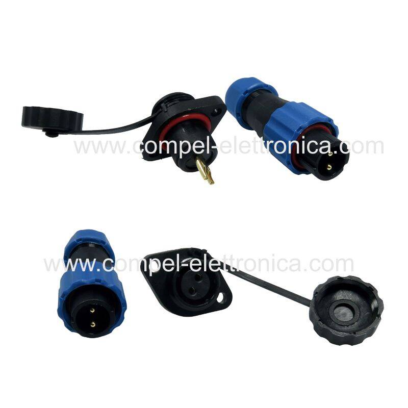 Descrizione: Connettore waterproof Spina SP13 volante maschio 2 poli e Presa SP13 pannello femmina 2 poli