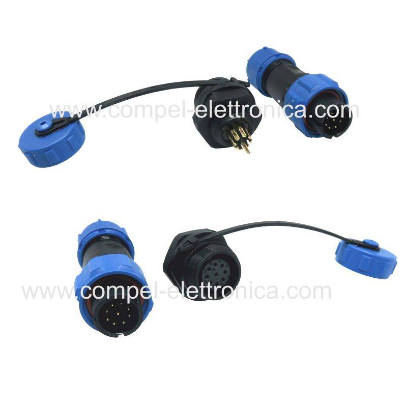 Descrizione: Connettore waterproof Spina SP13 volante maschio 7 poli e Presa SP13 pannello femmina 7 poli