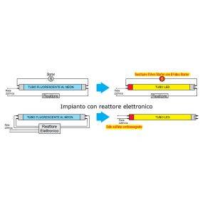 Collegare L e N dalla parte della marchiatura come indicato in figura. Una connessione diversa causa CORTO CIRCUITO danneggiando irreparabilmente il tubo led. Il danno per uso improprio non è coperto da garanzia.