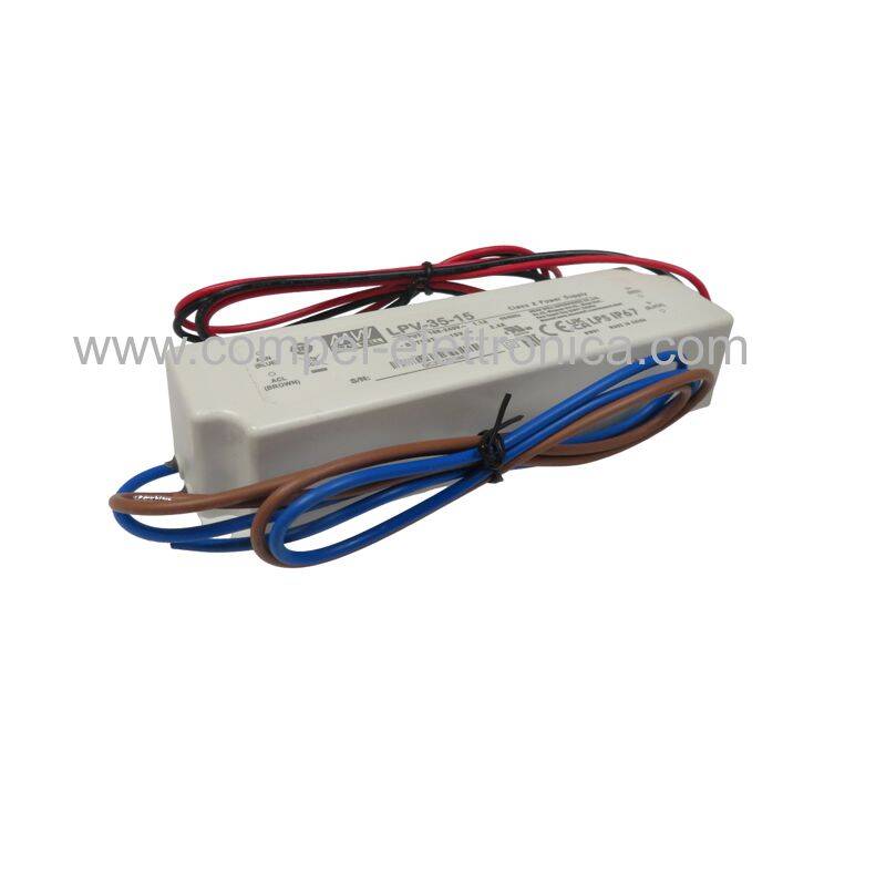 ALIMENTATORI LED DRIVER CV 15Vdc 36W 2,4A TENSIONE COSTANTE IP67 MW